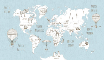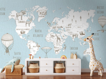 Fototapety na míru, Mapa Světa se zvířátky, 10009, Vavex