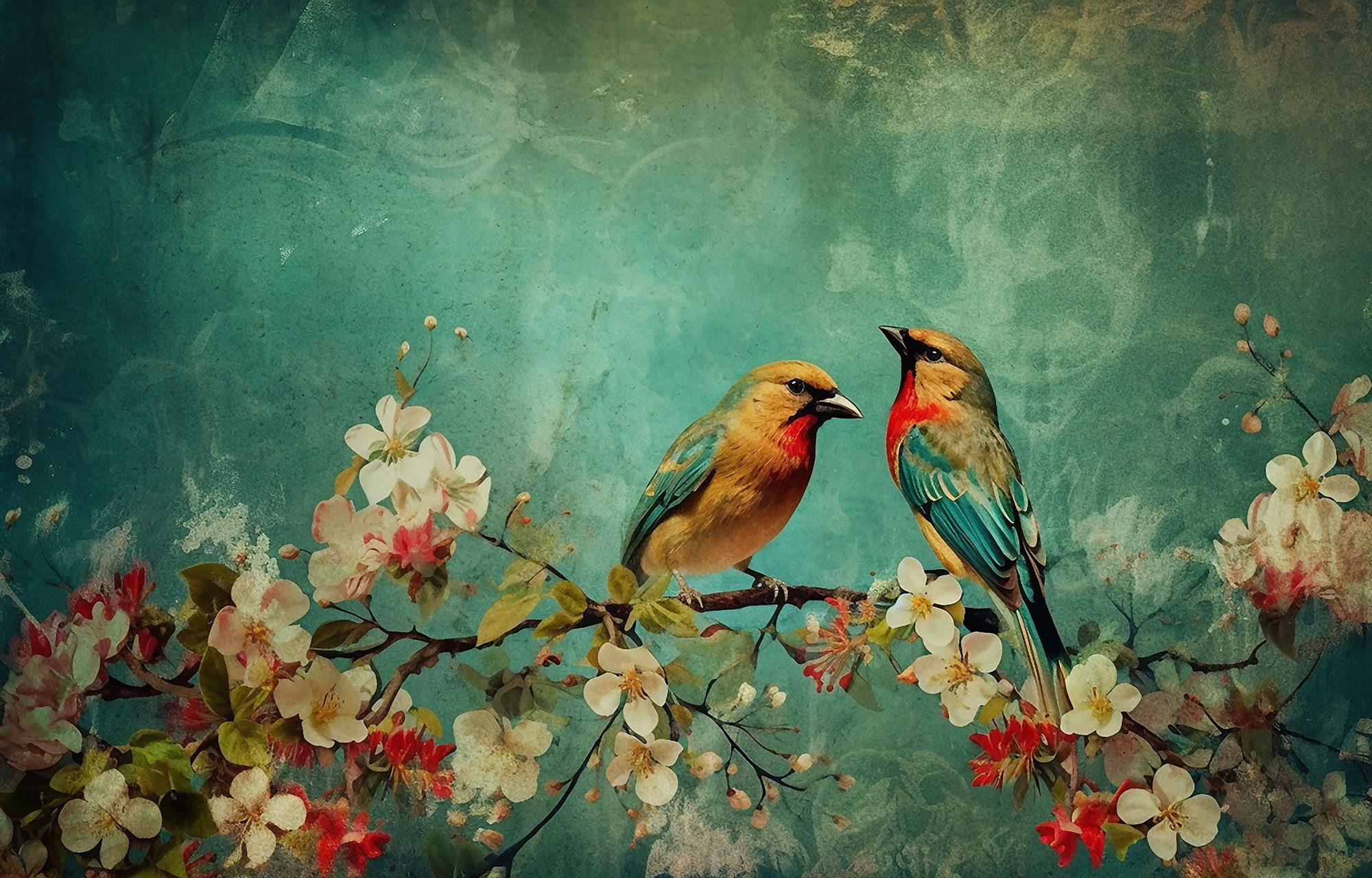 Fototapety na míru, Rozkvetlá větvička s ptáčky, 10056, Vavex