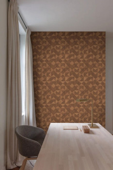 Vliesová, metalická bronzová, geometrická vliesová tapeta s omyvatelným vinylovým povrchem.