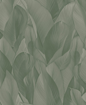 Výrazně plastická vliesová tapeta s vinylovým povrchem, motiv listů v odstínech zelené.