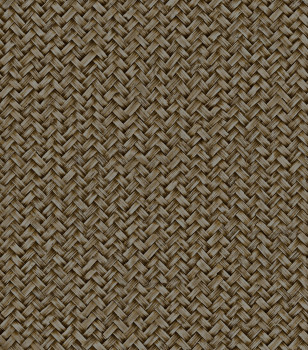 Luxusní vliesová tapeta s vinylovým povrchem, textura evokuje proplétanou rohož z přírodního materiálu, odstíny hnědé a stříbrné.