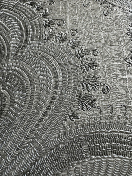 Luxusní vliesová tapeta s vinylovým povrchem, zámecký vzor v bílé a šedo-stříbrné.