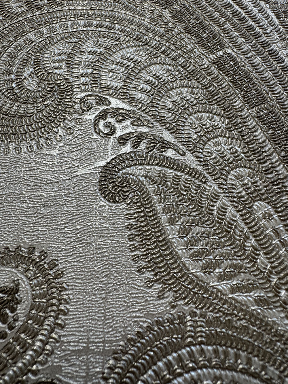 Luxusní vliesová tapeta s vinylovým povrchem, zámecký vzor v odstínech pololesklé béžové a hnědé.