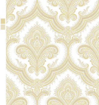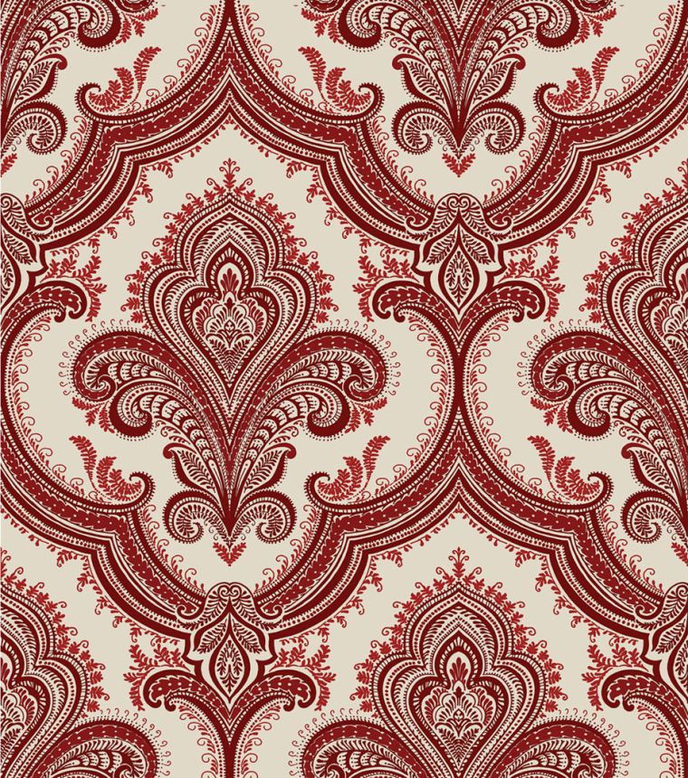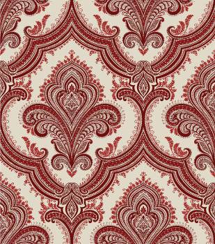 Luxusní vliesová tapeta s vinylovým povrchem, zámecký vzor v odstínech pololesklé béžové a vínové.