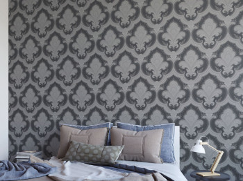 Luxusní vliesová tapeta s vinylovým povrchem, zámecký vzor v odstínech pololesklé béžové a zelené.
