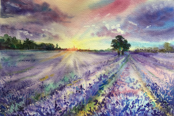 Fototapety na míru, Akvarel levandulového pole, 10167, Vavex