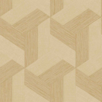 Geometrická vliesová tapeta s vinylovým povrchem, odstíny béžovo-okrové, jemná plastická textura, zlato-béžové detaily.
