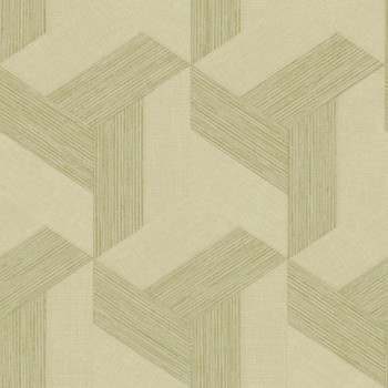 Geometrická vliesová tapeta s vinylovým povrchem, odstíny béžovo-zelené, jemná plastická textura.