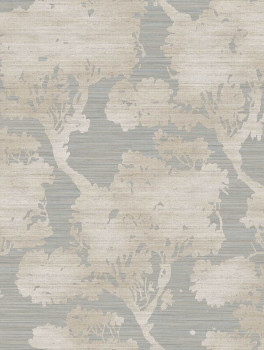 Vliesová tapeta s vinylovým povrchem, odstíny šedé a béžové, obrysy stromů, textilní struktura.