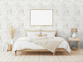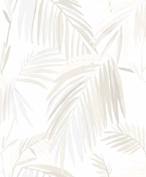 Luxusní vliesová tapeta na zeď, plastické pololesklé palmové listy, odstíny krémové a smetanově bílé.