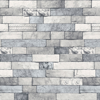 Vliesová, šedá tapeta s omyvatelným vinylovým povrchem. Imitace kamene.