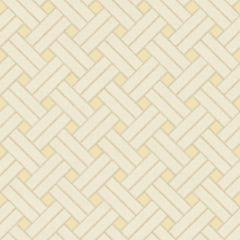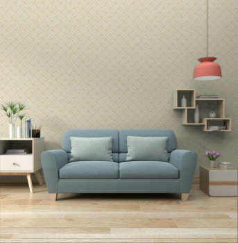 Luxusní vliesová tapeta na zeď, geometrický proplétaný vzor, odstíny béžové a okrové.