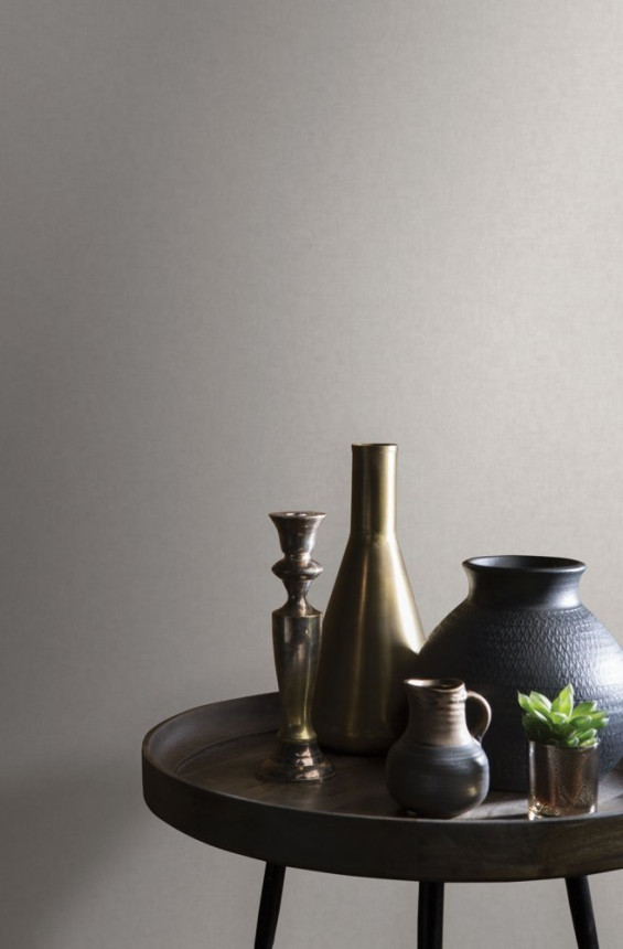 Vliesová tapeta s vinylovým povrchem. Design a textura jemně žíhané látky v šedo-béžových odstínech.