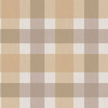 Vliesová tapeta s vinylovým povrchem, imitace kárované látky v odstínech šedé a béžové.