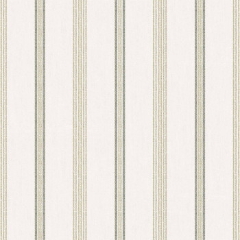 Vliesová tapeta s vinylovým povrchem, imitace proužkované látky v odstínech zelené a světle béžové.