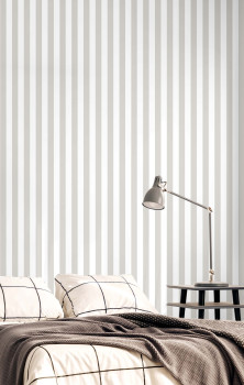 Vliesová tapeta s vinylovým povrchem, pruhy v odstínech šedé a bílé, jemná textura.