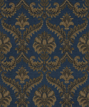 Vliesová tapeta s vinylovým povrchem, zámecký damaškový vzor, odstíny tmavě modré a hnědé, odstíny se mění podle dopadu světla.