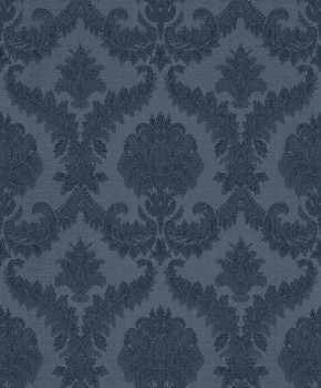 Vliesová tapeta s vinylovým povrchem, odstíny modré, zámecký damaškový vzor.