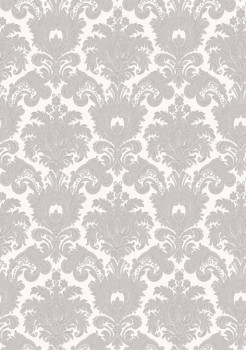 Vliesová tapeta s vinylovým povrchem, zámecký damaškový vzor - krémový podklad, vzor odstíny šedo-stříbrné.