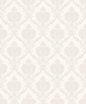 Vliesová tapeta s vinylovým povrchem, odstíny bílo-krémové, zámecký damaškový vzor.