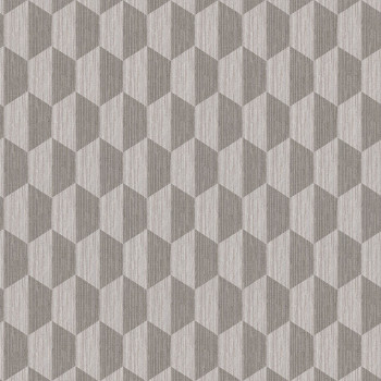 Vliesová tapeta s vinylovým povrchem s geometrickým vzorem. Odstíny šedé, jemná žíhaná látková textura.