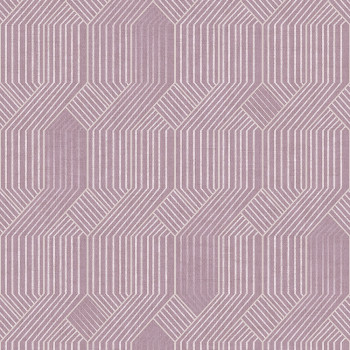 Vliesová, geometrická tapeta s vinylovým povrchem, podklad v odstínech šeříkové / lila, bílé linky, metalické obrysy / světlé zlato.