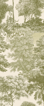 Vliesová obrazová tapeta na zeď, jemně plastická látková textura, romantická krajina v odstínech zelené.