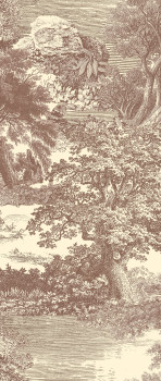 Vliesová obrazová tapeta na zeď, jemně plastická látková textura, romantická krajina v odstínech hnědé.