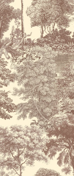 Vliesová obrazová tapeta na zeď, jemně plastická látková textura, romantická krajina v odstínech hnědé.