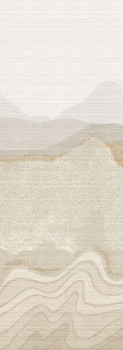 Vliesová obrazová tapeta na zeď, jemně plastická látková textura, motiv horské krajiny v odstínech šedé a béžové.