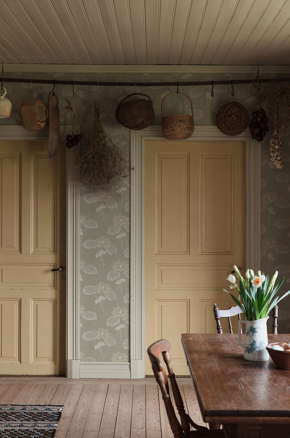 Kolekce tapet Alla Tiders Hus je oslavou krásných domovů napříč časem. Najdete v ní vzory inspirované šesti různými obdobími 20. století – od konce 19. století až po současnost. Některé motivy pocházejí přímo z archivních originálů, jiné vznikly nově, ale vždy s citem pro dobu, ze které čerpají.