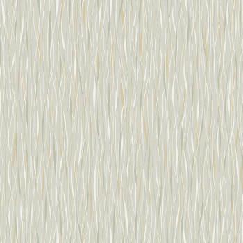 Vliesová tapeta na zeď, podklad šedý, vzor vlnitých linií v odstínech bílé, zelené a okrové.