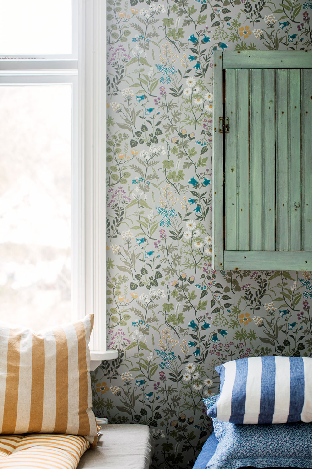 Kolekce tapet Alla Tiders Hus je oslavou krásných domovů napříč časem. Najdete v ní vzory inspirované šesti různými obdobími 20. století – od konce 19. století až po současnost. Některé motivy pocházejí přímo z archivních originálů, jiné vznikly nově, ale vždy s citem pro dobu, ze které čerpají.
