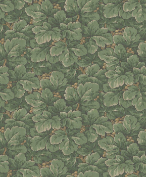 Vliesová tapeta na zeď - autentická replika z historického archivu, ztělesňuje přelom minulého století svým gobelínovým vzhledem - zelené listy na kostkované mřížce.