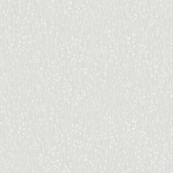 Vliesová tapeta na zeď, stylizovaný vzor větviček s listy v chladných jemných zelených tónech.