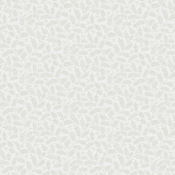 Vliesová tapeta na zeď, jemně zelený vzorek listů na světle šedém podkladu.