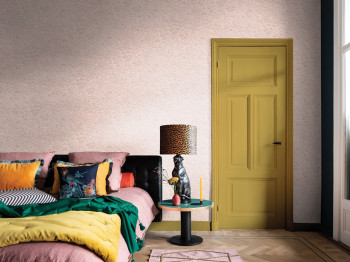 Vliesová tapeta s vinylovým povrchem. Přírodní design v odstínech od bledě růžové po cihlovou.