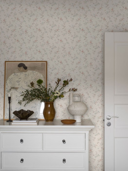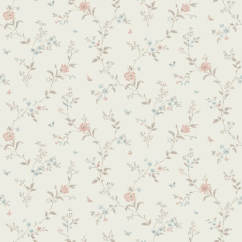 Vliesová tapeta na zeď, romantický vzor květin v tlumených barvách béžové, růžové, modré.