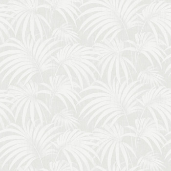 Vliesová tapeta na zeď, vzor palmových listů v tlumených tónech šedé.