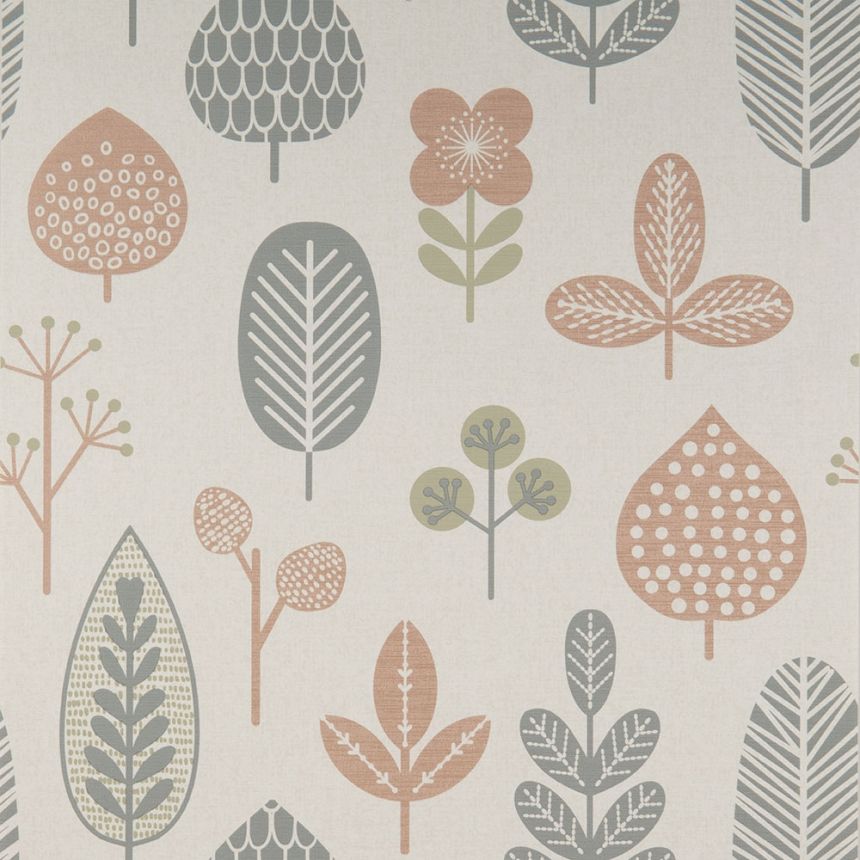Vliesová tapeta, struktura jemné textilie. Podklad bílo-šedý, vzor odstíny šedé, růžové a khaki.