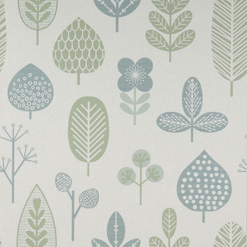 Vliesová tapeta, struktura jemné textilie. Podklad bílo-šedý, vzor odstíny zelené.