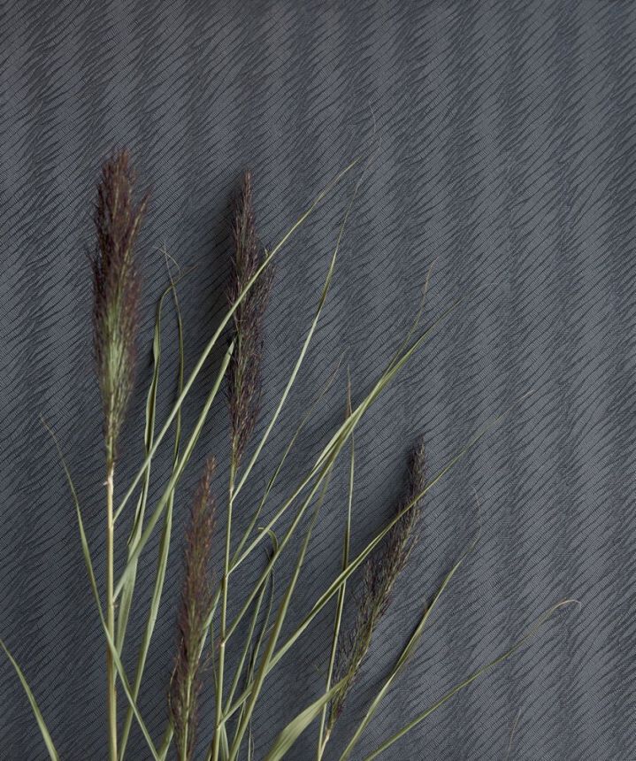 Vliesová tapeta. Jemně plastická struktura, odstíny tmavě šedé, střídání matu s jemným pololeskem.
