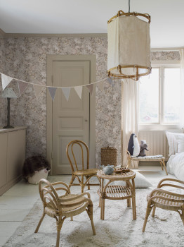 Barevnost je příjemná a uklidňující – jemné zelené, béžové, modré i hnědé tóny vytvářejí harmonickou atmosféru, která podporuje dětskou představivost a zároveň neruší při usínání. Tapety se hodí do dětského pokojíčku, herny i koutku na hraní – a porostou s vaším dítětem.