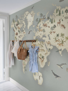 Barevnost je příjemná a uklidňující – jemné zelené, béžové, modré i hnědé tóny vytvářejí harmonickou atmosféru, která podporuje dětskou představivost a zároveň neruší při usínání. Tapety se hodí do dětského pokojíčku, herny i koutku na hraní – a porostou s vaším dítětem.
