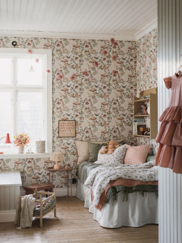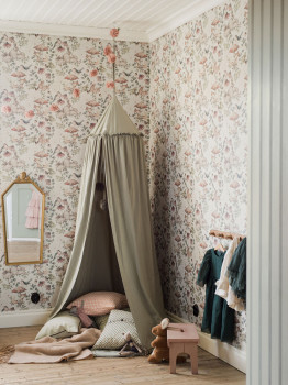 Barevnost je příjemná a uklidňující – jemné zelené, béžové, modré i hnědé tóny vytvářejí harmonickou atmosféru, která podporuje dětskou představivost a zároveň neruší při usínání. Tapety se hodí do dětského pokojíčku, herny i koutku na hraní – a porostou s vaším dítětem.