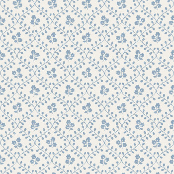 Vliesová tapeta na zeď, ornamentální květinový motiv inspirovaný tradičními výšivkami, odstíny smetanově bílé a modré.
