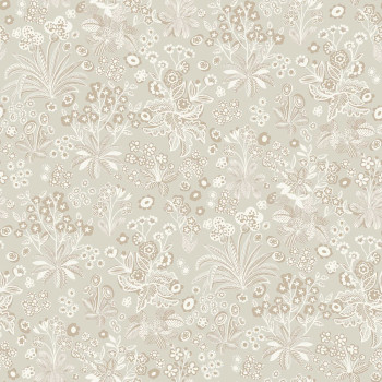 Vliesová tapeta na zeď, šedo-béžový podklad, květinový motiv v odstínech krémové a béžové.
