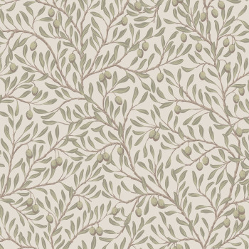 Vliesová tapeta na zeď, světlý šedo-béžový podklad, motiv olivovníku se zralými plody.