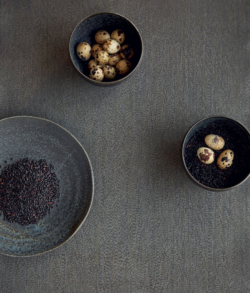 Vliesová tapeta s jemně plastickým povrchem, žíhaný bublinkový design v odstínech černé.