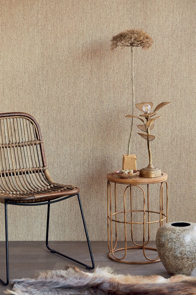 Vliesová tapeta s jemně plastickým povrchem, žíhaný bublinkový design v odstínech krémové a béžové.